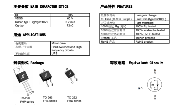 1、FHP80N06B場(chǎng)效應(yīng)管